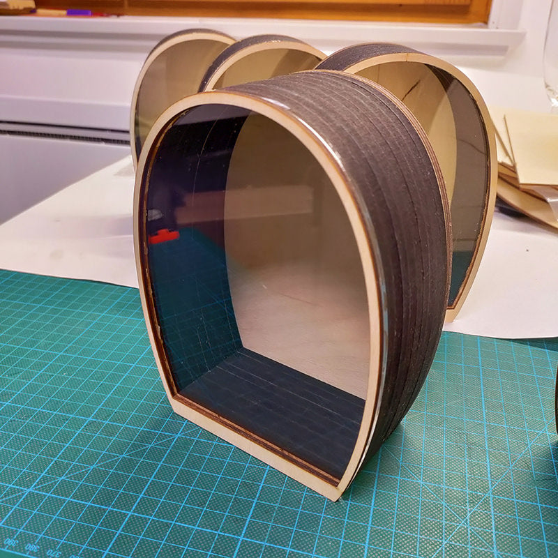 Boîte en bois avec vitre acrylique à l'avant et porte coulissante à l'arrière