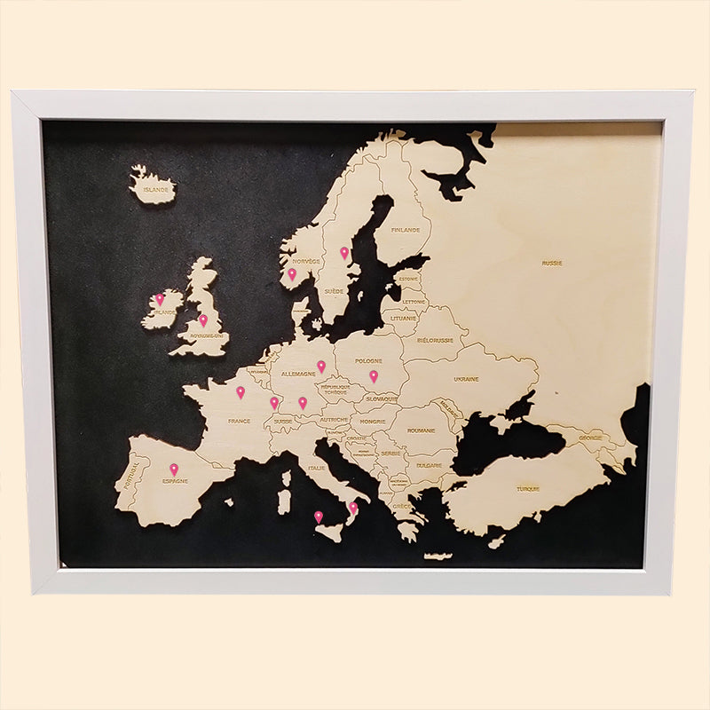Carte de l'Europe avec des marqueurs d'emplacement rouge