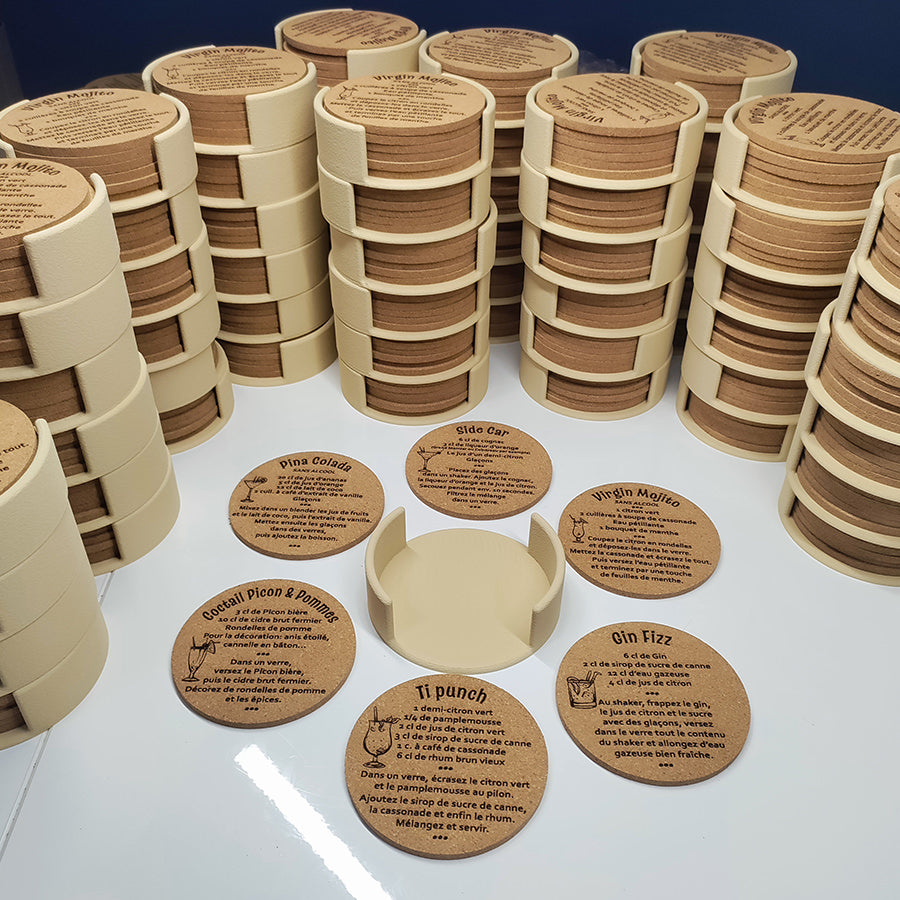 6 dessous de verre en liège avec support de rangement