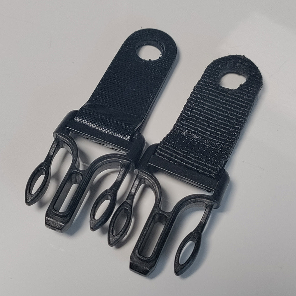 Remplacement d'une lanière souple introuvable par une pièce sur mesure, adaptée à l'usage quotidien