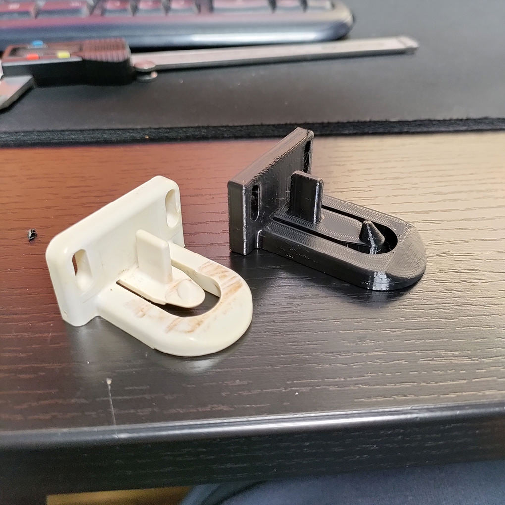 Pièce cassée sous une poubelle intégrée, reproduite sur mesure pour restaurer le mécanisme d'ouverture