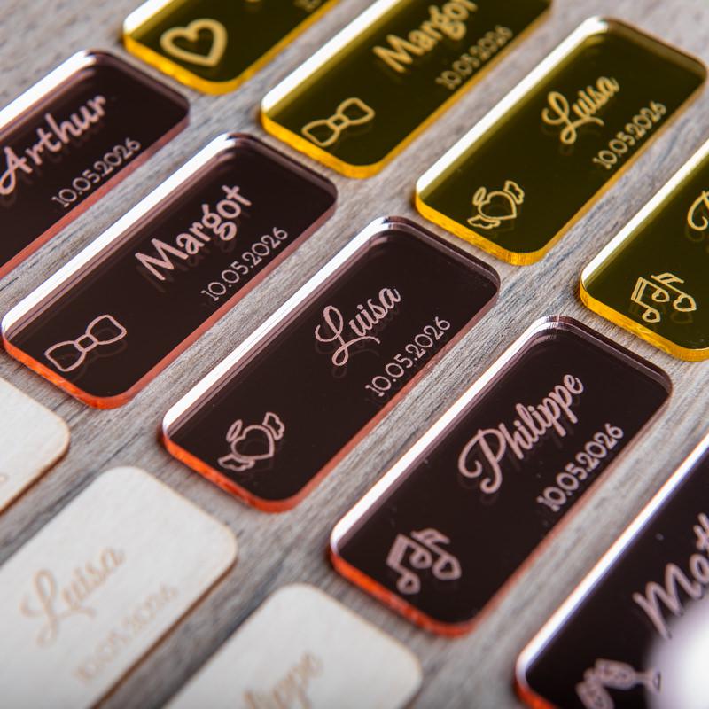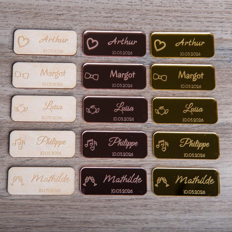 Conçus pour sublimer vos tables lors d’un mariage, d’un baptême, d’un anniversaire ou d’un événement d’entreprise, ces marque-places sont gravés avec soin au laser dans notre atelier artisanal.