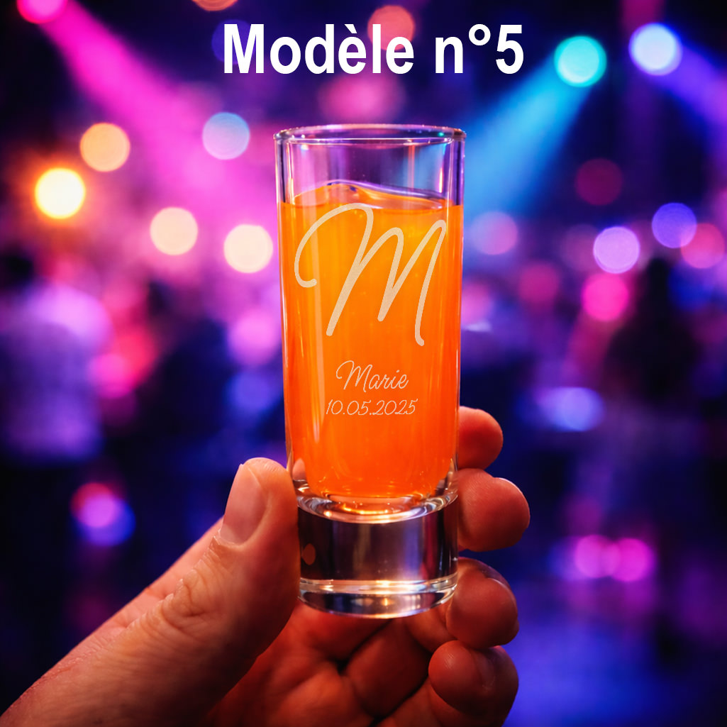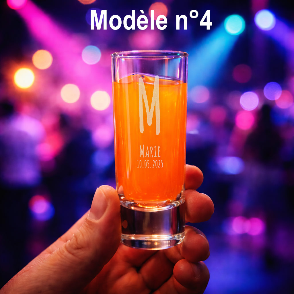 Ajoutez une touche unique à vos soirées avec ce verre shooter personnalisé de 6 cl. Gravure au laser précise, choix de 5 polices disponibles.